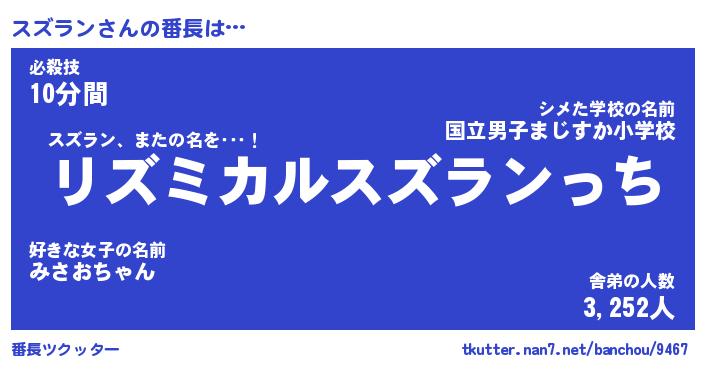 | ヒーロー風カッコイイあだ名 | 『スーパースズラン』『暗黒騎士スズ』 |