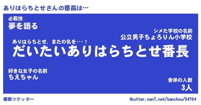 | ヒーロー風カッコイイあだ名 | 『スーパーアリハラチトセ』 |