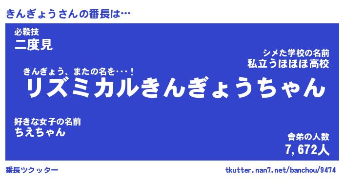 | ヒーロー風カッコイイあだ名 | 『スーパーキンギョウ』『炎刃騎士キン』 |