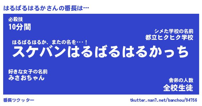 | 伝説のあだ名 | 『不死鳥のスナイパーはるばるはるか』 |