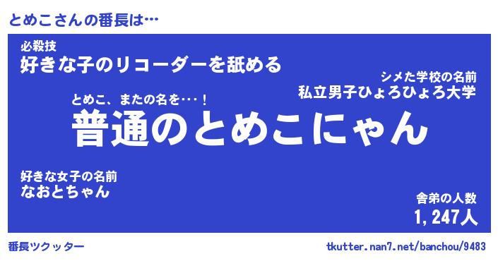 | 意味不明あだ名 | 『ペロリンとめこ』『とめこフォーエバー』 |