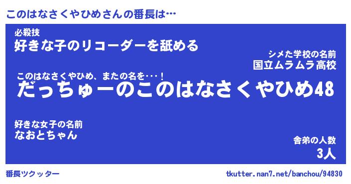 | 肩書あだ名 | 『このはなさくやひめ店長』 |