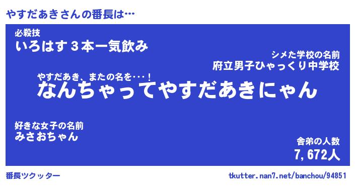 肩書あだ名 | 『やすだあき社長』『やすだあき大統領』 |