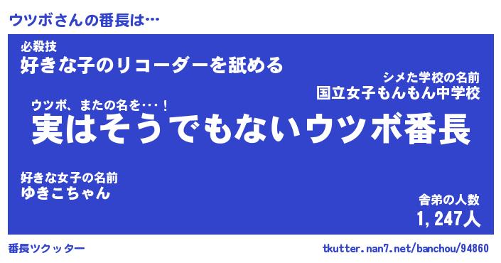 | ポケモン風あだ名 | 『ウツチュウ』『ウツボダネ』 |