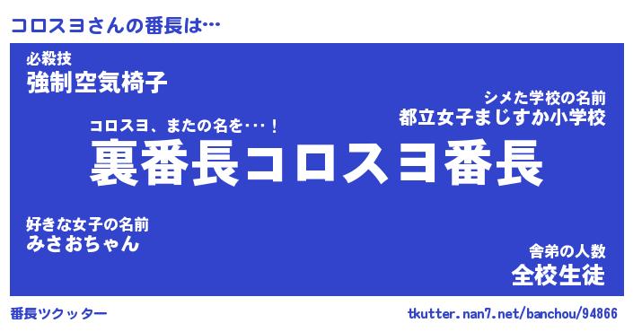 | ファンタジー風あだ名 | 『コロフェル』『エターナルコロスヨー』 |