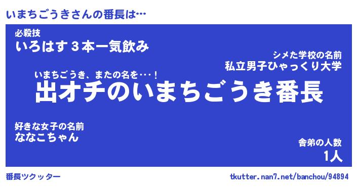 | 男性向けラノベタイトル風あだ名 | 『いまちごうきの憂鬱』 |