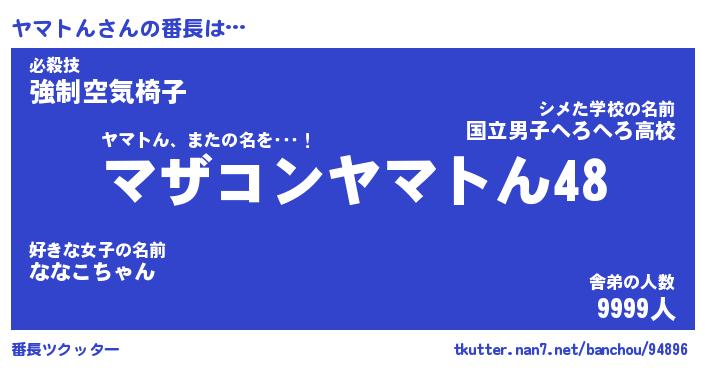 | 意味不明あだ名 | 『ペロリンヤマトん』『永久保存ヤマトん』 |