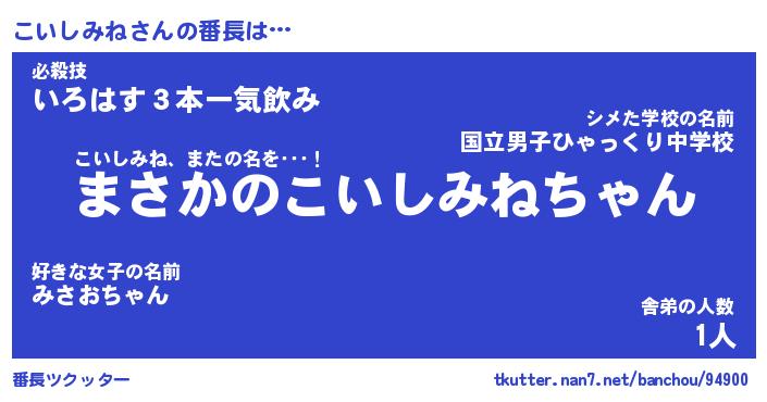| ポケモン風あだ名 | 『コイチュウ』『コイシダネ』 |