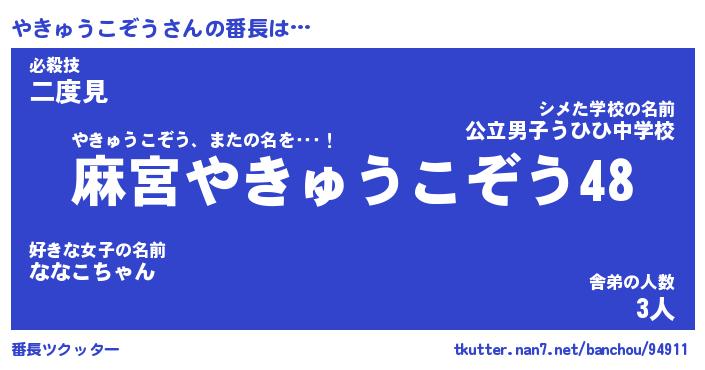 | ヒーロー風カッコイイあだ名 | 『スーパーヤキュウコゾウ』 |