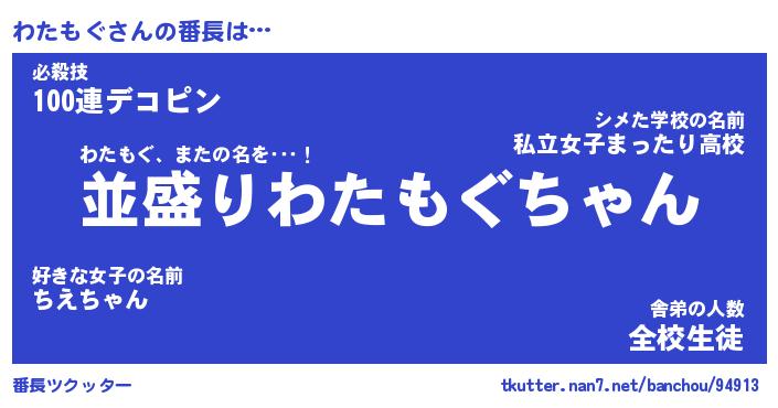 | ポケモン風あだ名 | 『ワタチュウ』『ワタモダネ』 |