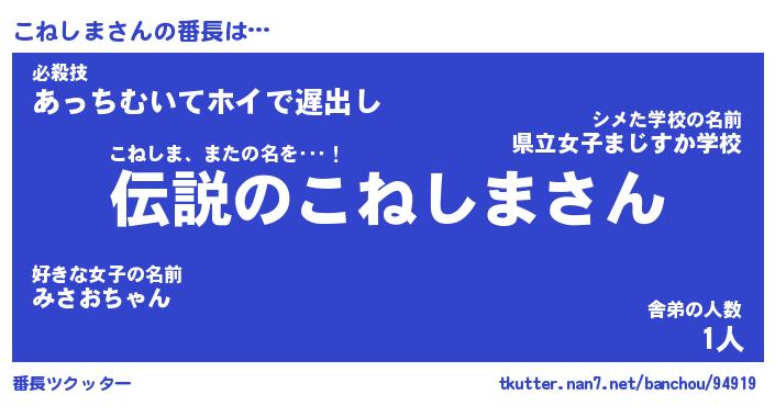 | 欧米人風あだ名 | 『マイケルこねしま』『ウサインこねしま』 |