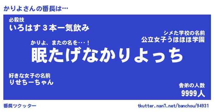 | 伝説のあだ名 | 『封印されしスナイパーかりよ』 |