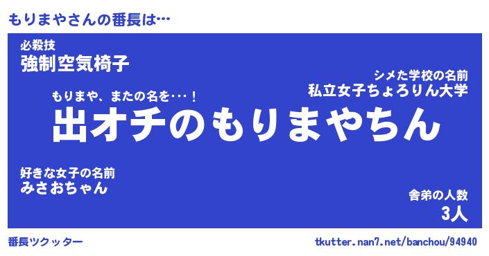 | 意味不明あだ名 | 『ペロリンもりまや』『永久保存もりまや』 |