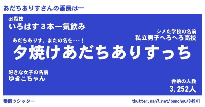 | ポケモン風あだ名 | 『アダチュウ』『アダチダネ』 |