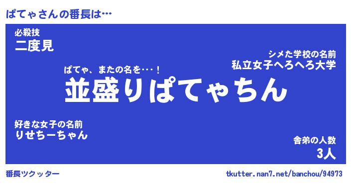 | 肩書あだ名 | 『ぱてゃ社長』『ぱてゃ国家主席』 |
