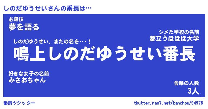 | 肩書あだ名 | 『しのだゆうせい社長』 |