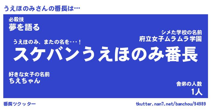 | ポケモン風あだ名 | 『ウエチュウ』『ウエホダネ』 |