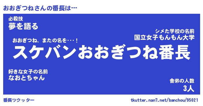 | 男性向けラノベタイトル風あだ名 | 『オオギツネアートオンライン』 |
