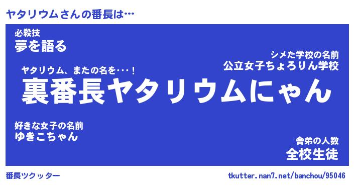 | 肩書あだ名 | 『ヤタリウム社長』『ヤタリウム総理大臣』 |