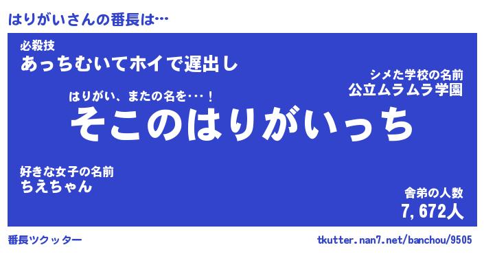 | 意味不明あだ名 | 『ペロリンはりがい』『永久保存はりがい』 |