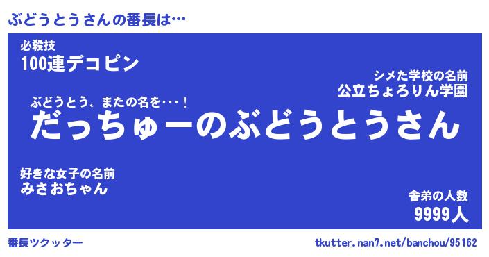 | ヒーロー風カッコイイあだ名 | 『スーパーブドウトウ』『天弓騎士ブド』 |