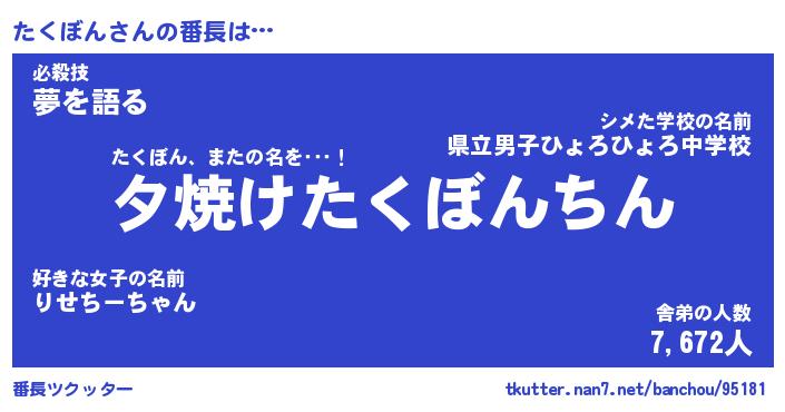| 2回繰り返すあだ名 | 『たくたく』『たたくく』『ぬめぬめ』 |