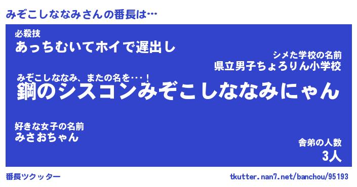 | 恥ずかしいあだ名 | 『プリティーみぞこしななみ』『みぞちん』 |