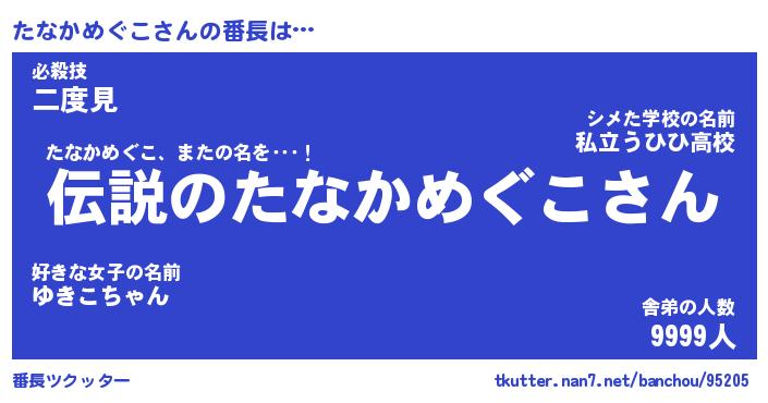 | 伝説のあだ名 | 『伝説のスナイパーたなかめぐこ』 |