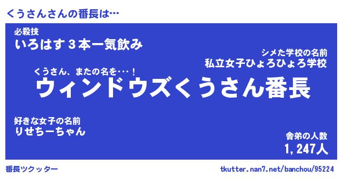 | 肩書あだ名 | 『くうさん社長令嬢』『くうさん総理大臣』 |
