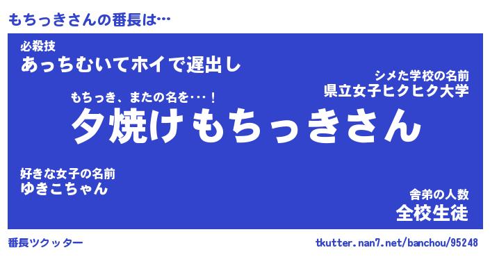 | ヒーロー風カッコイイあだ名 | 『スーパーモチッキ』『天弓騎士モチ』 |