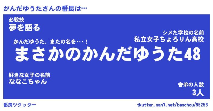| 伝説のあだ名 | 『伝説のスナイパーかんだゆうた』 |