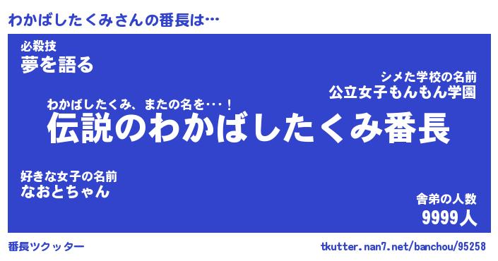 | 伝説のあだ名 | 『伝説のスナイパーわかばしたくみ』 |