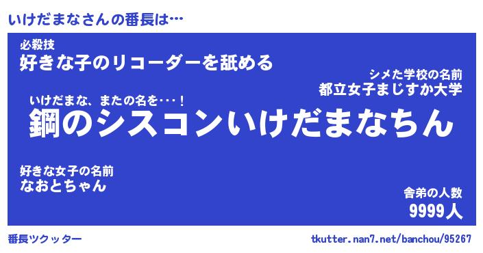 | 伝説のあだ名 | 『封印されしスナイパーいけだまな』 |
