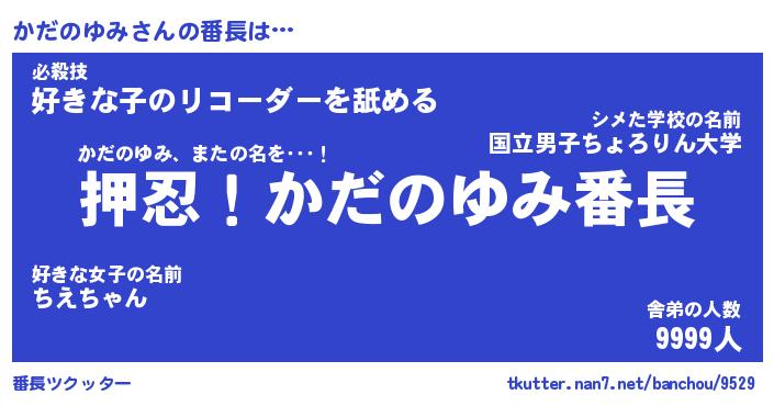 | 肩書あだ名 | 『かだのゆみ社長令嬢』『かだのゆみ団長』 |
