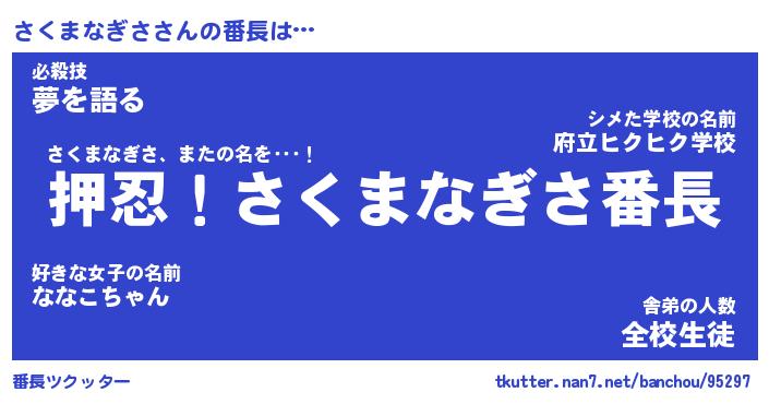| ヒーロー風カッコイイあだ名 | 『スーパーサクマナギサ』『暗黒騎士サク』 |