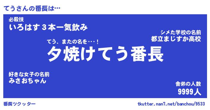 | 肩書あだ名 | 『てうCEO』『てう大統領』『てう班長』 |