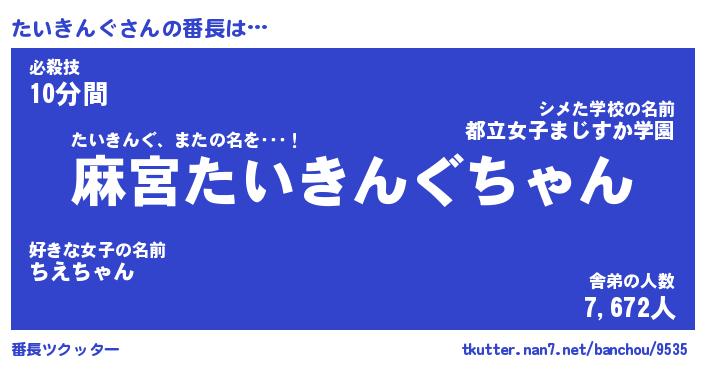 | ヘコむあだ名 | 『たいにー』『つくし』『たいを』 |