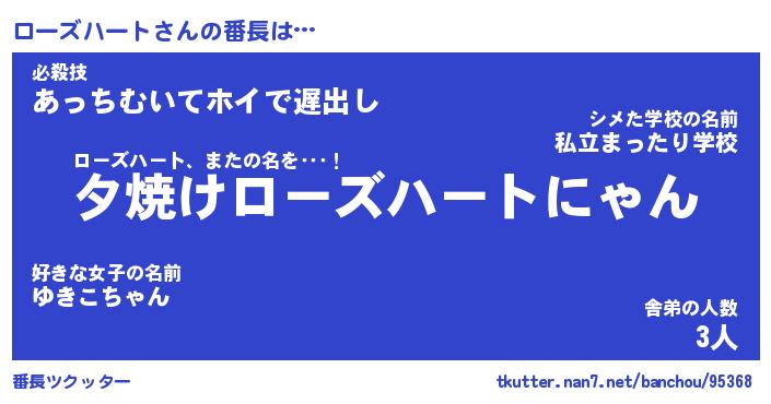 | ヒーロー風カッコイイあだ名 | 『スーパーローズハート』『魔戒騎士ロー』 |