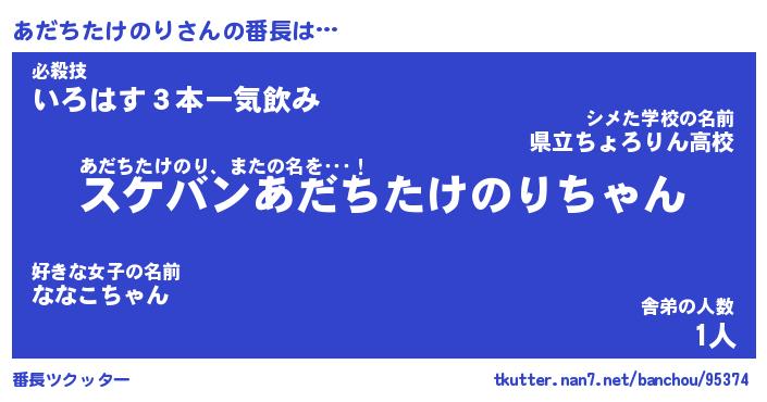 | ポケモン風あだ名 | 『アダチュウ』『アダチダネ』 |