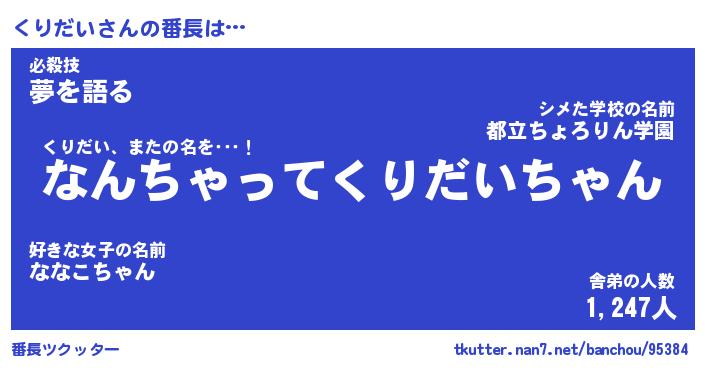 | 肩書あだ名 | 『くりだいCEO』『くりだい大統領』 |