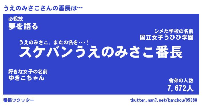 | ヒーロー風カッコイイあだ名 | 『スーパーウエノミサコ』『炎刃騎士ウエ』 |