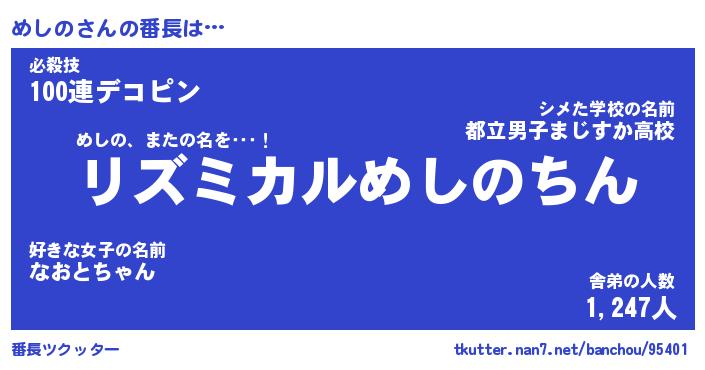 | 意味不明あだ名 | 『ペロリンめしの』『めしのフォーエバー』 |