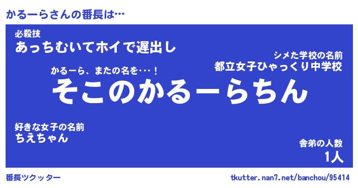 | 意味不明あだ名 | 『ペロリンかるーら』『永久保存かるーら』 |