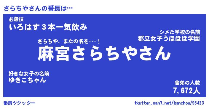 | ヘコむあだ名 | 『さらっふぃ~』『牛乳』『さら太郎』 |