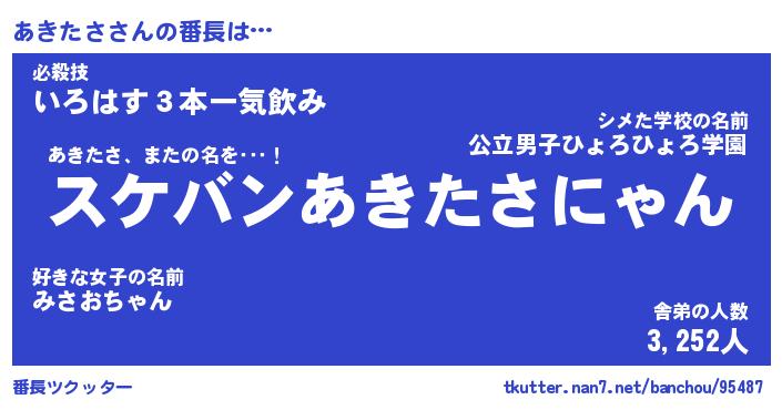 | 意味不明あだ名 | 『ペロリンあきたさ』『永久保存あきたさ』 |