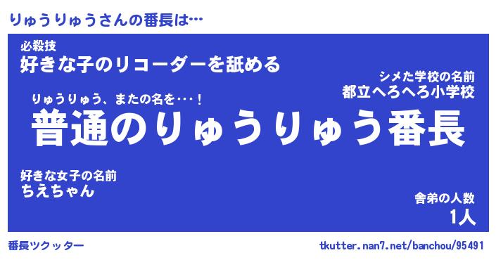 | ヒーロー風カッコイイあだ名 | 『スーパーリュウリュウ』『黄金騎士リュ』 |