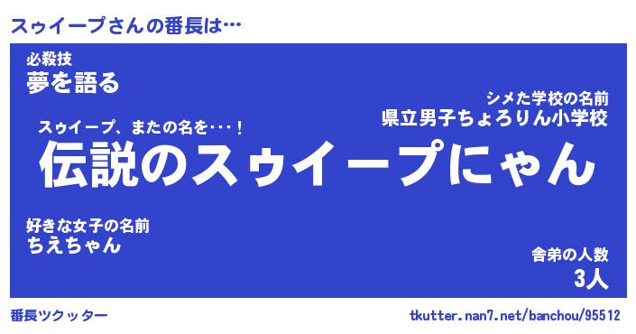 | 肩書あだ名 | 『スゥイープ社長』『スゥイープ大統領』 |
