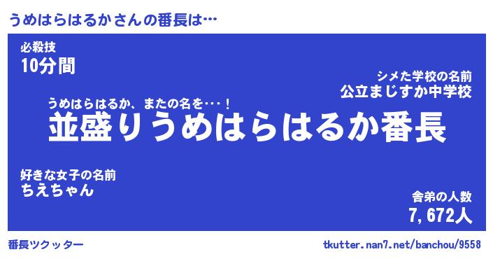 | ヒーロー風カッコイイあだ名 | 『スーパーウメハラハルカ』 |