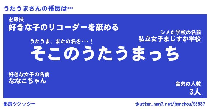 | ヒーロー風カッコイイあだ名 | 『スーパーウタウマ』『魔戒騎士ウタ』 |