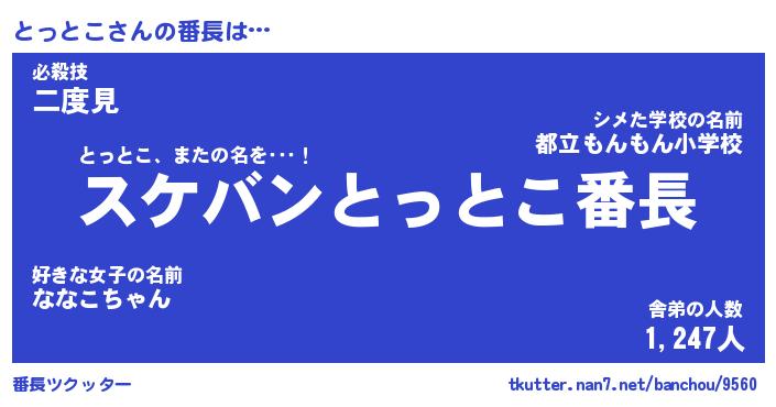 | 意味不明あだ名 | 『ペロリンとっとこ』『永久保存とっとこ』 |